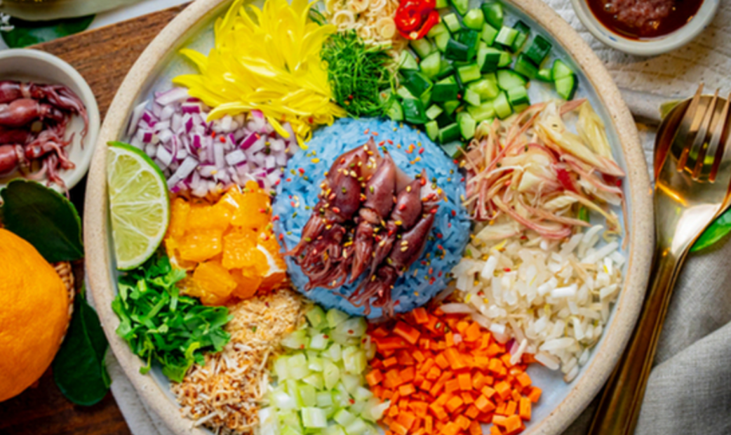 chompoo is a Thai restaurant led by a chef renowned in Japan's culinary scene. Alongside a Thai chef who is also skilled in Japanese cuisine, they create unique fusion dishes that blend Thai and Japanese flavors—offerings you won’t find anywhere else. A standout dish is the Thai rice salad "Khao Yam." The rice, featuring a striking blue hue, is naturally dyed with butterfly pea flowers. It’s beautifully plated with over ten varieties of vegetables, herbs, and fish like sweetfish and mackerel, all mixed with a sauce for a delightful experience. The restaurant also offers a vegan course, and the drink menu is extensive, featuring everything from natural wines to Chinese teas.