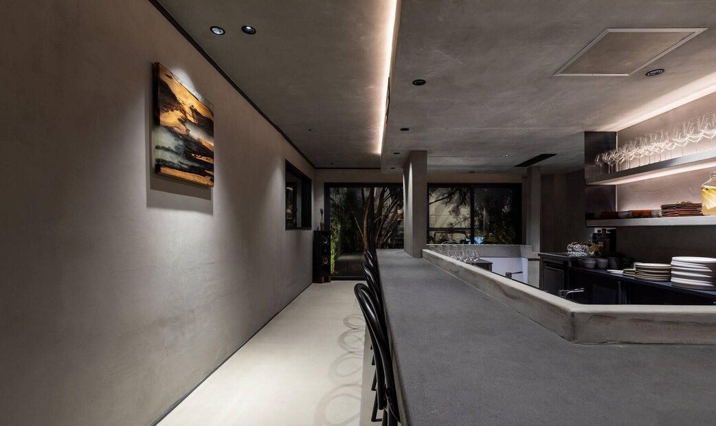 The restaurant’s modern interior, crafted by a skilled designer, offers a sophisticated ambiance, highlighted by a striking granite serving counter that enhances the dining experience.