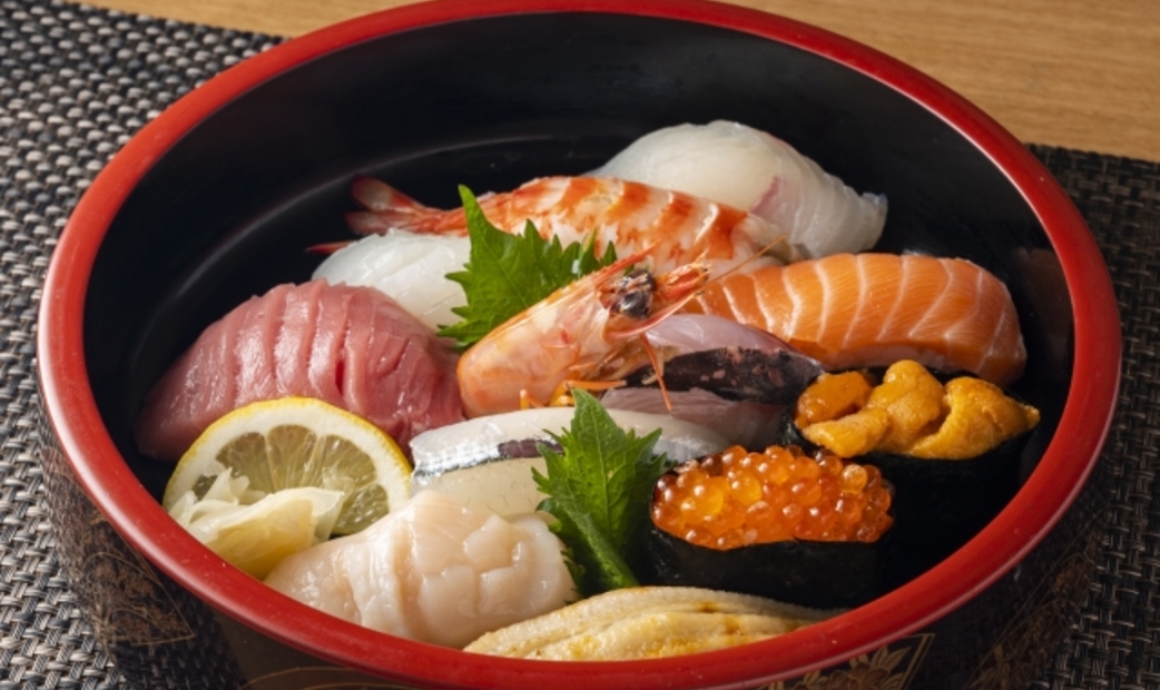 The chef at Shutoku 2go Ten, inspired by a childhood visit to a sushi restaurant with his family, honed his skills at various sushi establishments in Tokyo before becoming the head chef. The restaurant serves authentic, high-quality toppings sourced from long-established fish wholesalers. Signature items include wild-caught bluefin tuna and exceptionally fresh white fish. The restaurant has a mix of counter seats, tables, and private rooms, making it suitable for all kinds of dining occasions. The extensive drink selection includes wine, shochu, and premium sake, while a variety of seasonal small dishes are also offered to complement the drinks. For those in a hurry, beautifully packed bento sets are available for takeout, with various options such as luxurious inarizushi filled with simmered conger eel (anago) or tiger prawn, as well as kanpyomaki rolls.
