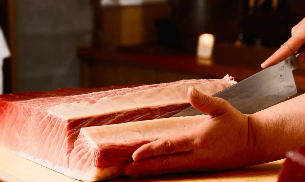 Chef Hiroyuki Sato previously served as the head chef at Sushi Tokami, where he earned the venue one Michelin star before passing it on to his apprentice and opening Hakkoku in 2018. Hakkoku means "black and white" in Japanese, and as the name suggests, the interior features a stylish black-and-white design with striking beauty. Chef Sato is known for his meticulous selection of maguro (tuna), sourcing it from the most renowned wholesaler at the market. The omakase course at Hakkoku begins with "tossaki temaki," a hand-rolled sushi made with a flavorful cut of tuna from the base of its head, which boasts a strong umami flavor.
