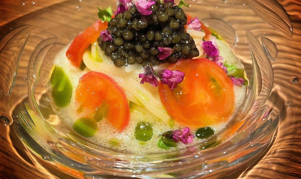 Celaravird offers a modern culinary experience with a fresh twist, nestled in a quiet residential neighborhood. With just two seats at the chef’s counter and 14 table seats, the restaurant creates a relaxed, home-like atmosphere, as if you're visiting a friend's house. It’s an innovative French restaurant that operates on a reservation-only basis.