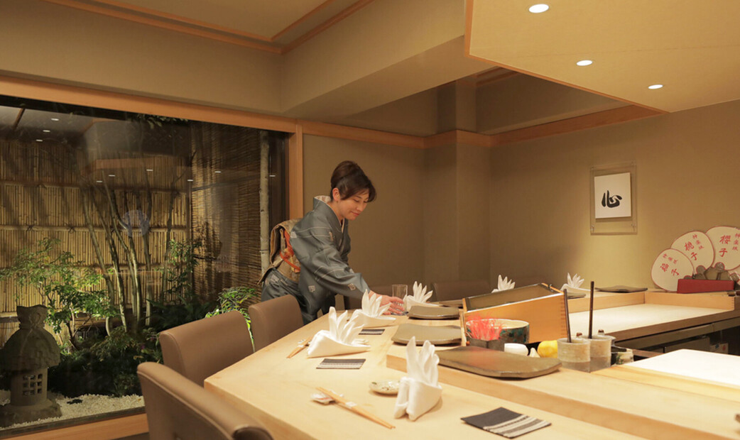 Mr. Shinji Kanesaka, after honing his skills for ten years at Kyubey, established his own restaurant in 2000. The establishment has been awarded two Michelin stars. He has further refined the techniques learned at Kyubey, creating the brand 'Kanesaka.' He has also trained many apprentices who have gone on to make their mark in the culinary world.