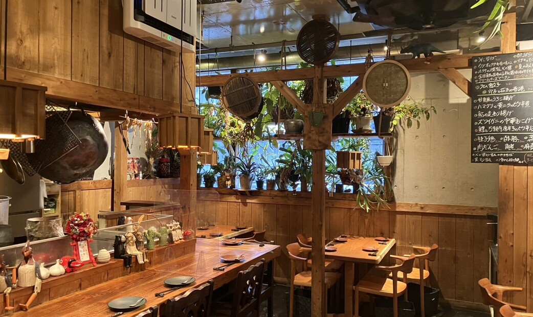 It's a modern Chinese restaurant where you can enjoy Chinese cuisine made with carefully selected ingredients paired with wine. The modern interior is decorated with stylish furniture and objects, offering both counter-seat and relaxed table seating.