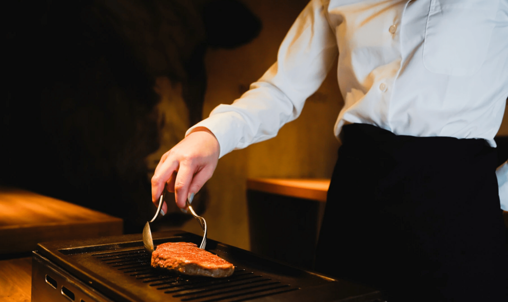 This restaurant, renowned for its meat dishes, has been ranked among the top 8 steakhouses in Japan by a global steak review site. The chef, with extensive knowledge of meat, crafts a unique array of dishes that stand apart from typical barbecue, steak, French, and Italian offerings. The restaurant features a course menu showcasing the finest meat of the day, prepared in the most suitable manner for each cut. A standout dish is the yukhoe, a Korean-style raw beef delicacy, elegantly topped with caviar on rice.