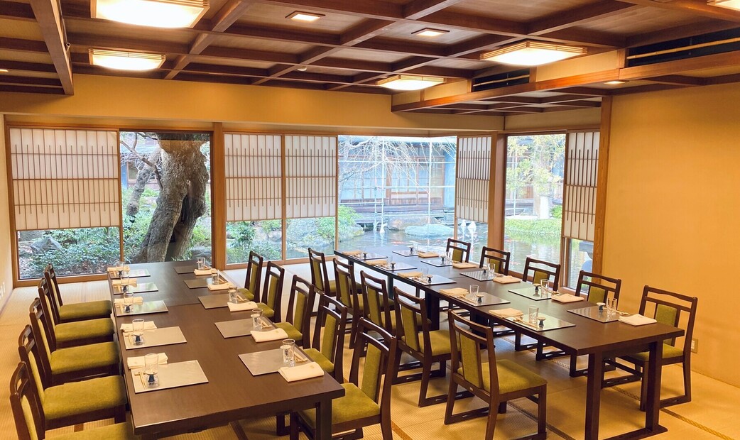 Tsukiji Jisaku is a Japanese restaurant located in Tsukiji Akashicho, near Ginza, with a spacious and beautiful garden. The garden features a variety of trees, including cherry blossoms. As you walk through the restaurant’s gate and along the garden path, the cherry blossoms in full bloom create a breathtaking view of spring. Every room offers a view of the garden, allowing guests to enjoy their meal while taking in the blossoms. With a history spanning 90 years, this traditional Japanese restaurant offers dishes that honor long-standing culinary traditions. The menu includes various courses, from kaiseki (traditional Japanese-style cuisine) to Kyushu-style chicken hot pot and more.