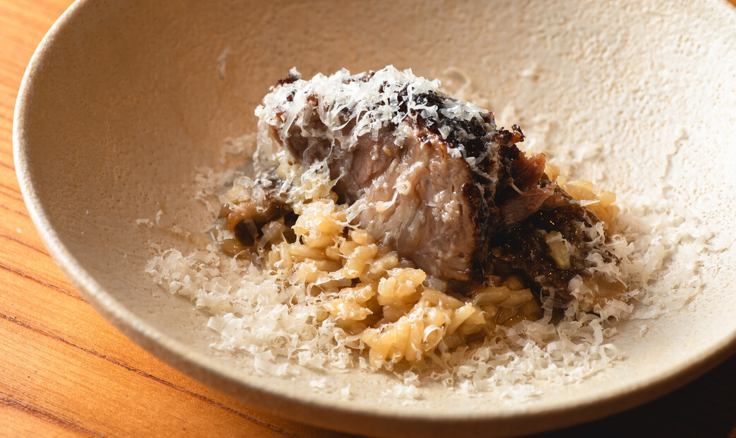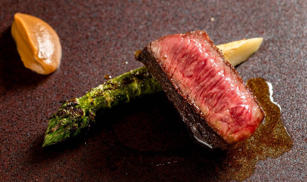 Chef Masatsugu Suzuki, trained in France, is renowned for his mastery of wood-fire techniques. His expertise in drawing out the natural umami and gentle smokiness of A5 Wagyu beef and fresh seafood is exceptional. One standout dish—the wood-fired clod heart steak served with a sake lees–based sauce—leaves a deep, lasting impression with its nuanced, lingering flavors.