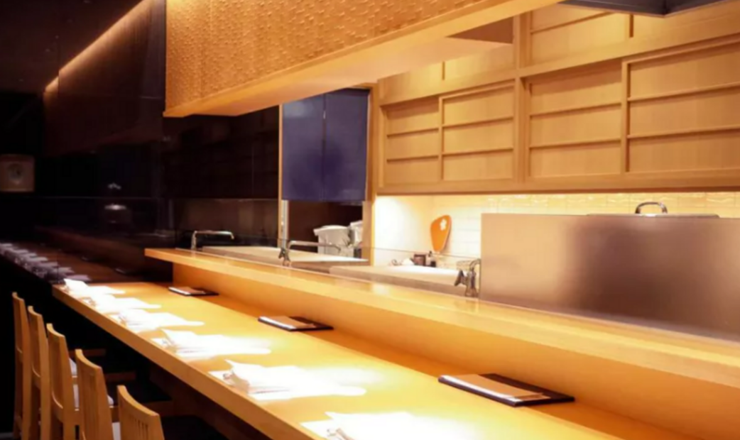 요리사가 묵묵히 손을 움직이는 카운터는 왼쪽에 도마, 오른쪽에 구이장이 마련되어 있다.