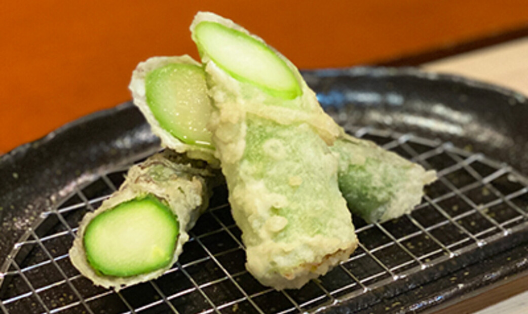 Made with healthy rice oil, the light and crisp tempura featuring Kyoto vegetables is exquisite.