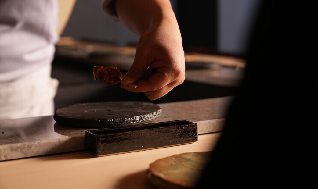 Owner Tatsuya Nagaoka wants his customers to “enjoy a wide variety of delicious food in small portions,” so he offers courses that keep the experience fresh and exciting.