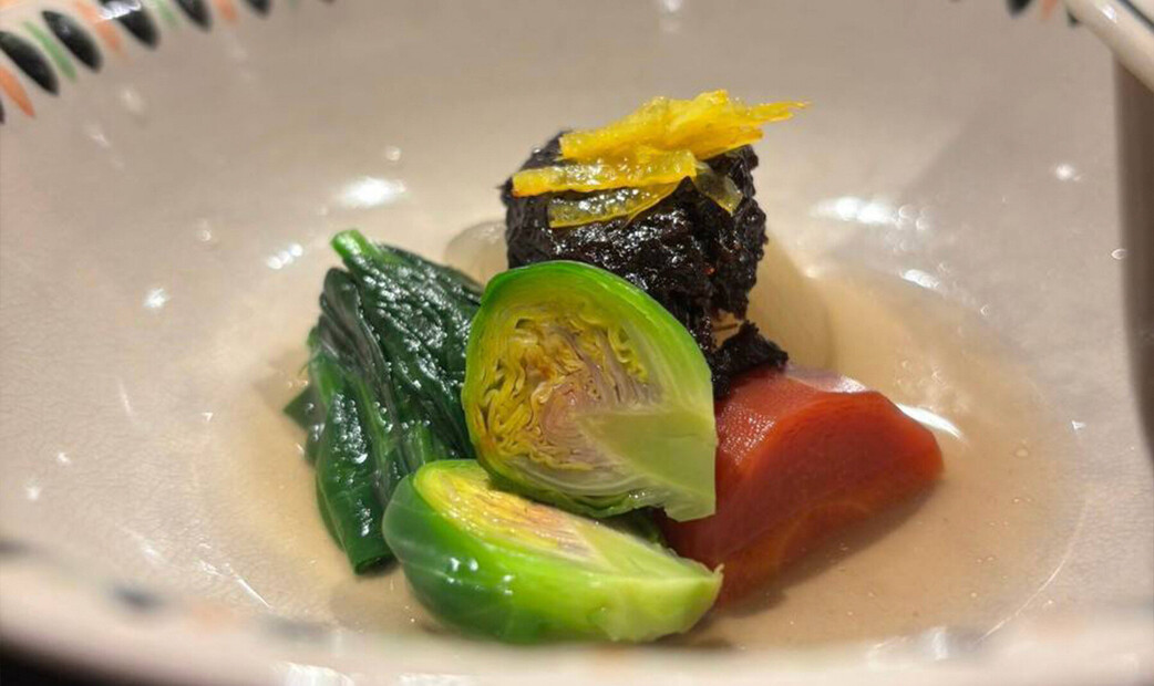 His commitment to Kyoyasai—Kyoto heirloom vegetables—is particularly deep. Grown in the fertile water and soil of Shugakuin Imperial Villa, these vibrant ingredients offer a rich, natural flavor that leaves a lasting impression.