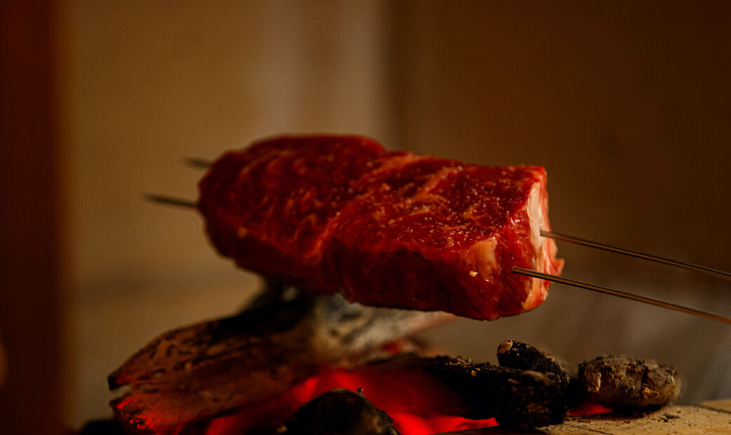 The restaurant features an extensive wine cellar with over 100 carefully curated bottles, predominantly from France. Our sommelier selects wines that perfectly complement our meat dishes, along with premium sake and champagne, ensuring the ideal pairing for every moment.