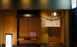 The space embodies the food culture of “kappo” cuisine in Osaka and the spirit of the tea ceremony. The space embodies the food culture of “kappo” cuisine in Osaka and the spirit of the tea ceremony. The double doors are made of zelkova wood and designed in the nijiri-guchi style (a small opening that obliges guests to bow when entering a tearoom).