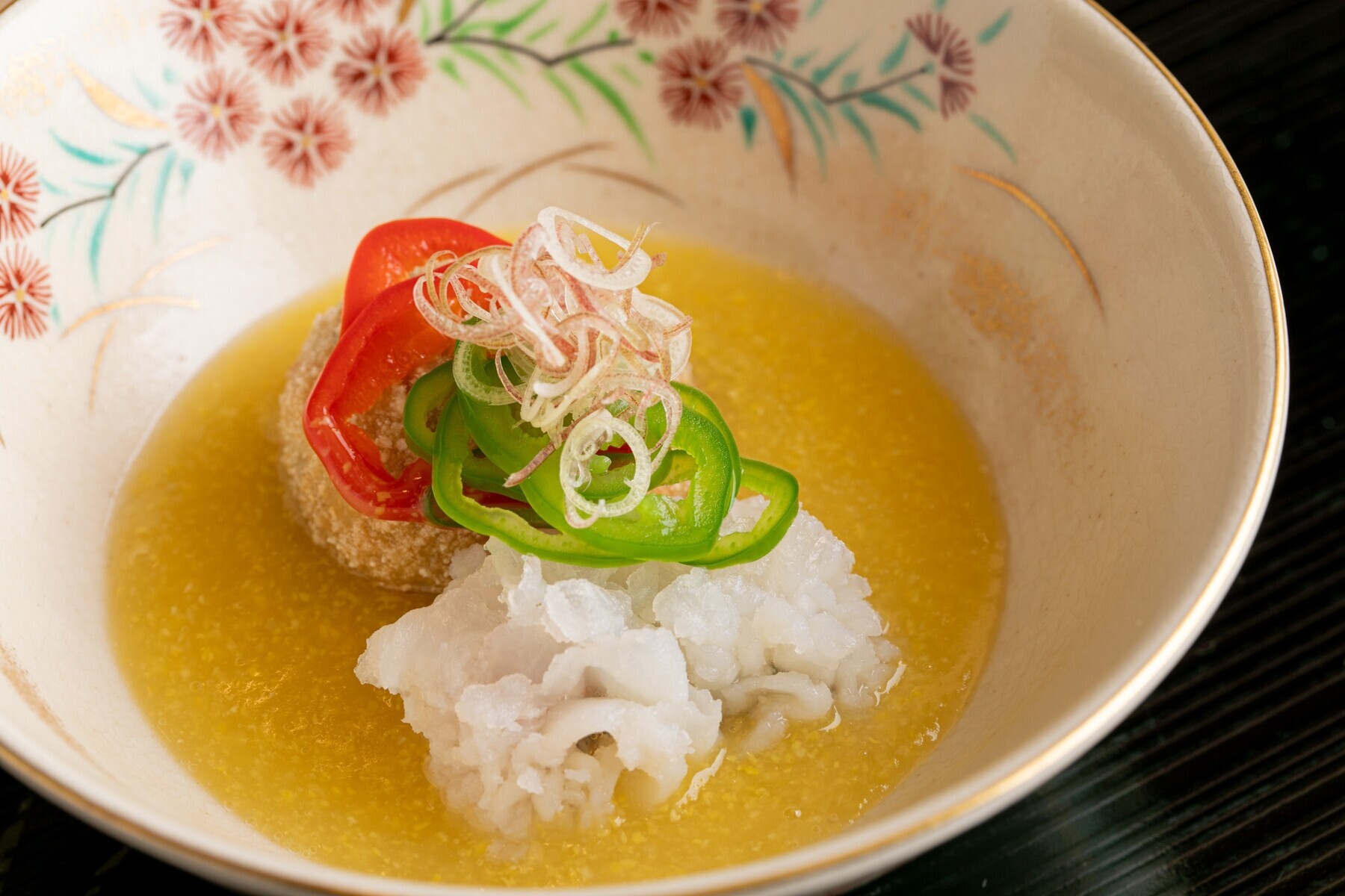 Located in Osaka, the birthplace of counter-style Kappo cuisine, the restaurant provides an interactive experience with its counter seats, where you can enjoy the unique interpretations of "Hashiri" (Ingredients at the beginning of the peak season), "Sakari" (seasonal ingredients) and "Nagori" (Ingredients that reach the end of the season and regret the end of the peak season). Embrace the diversity of nature with each exquisite dish.