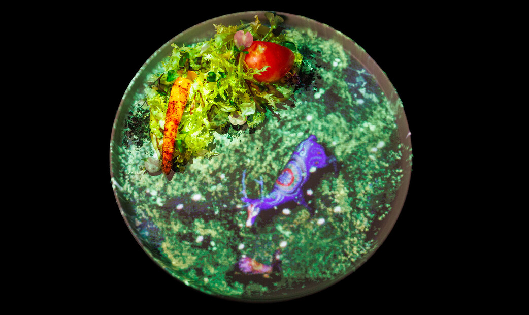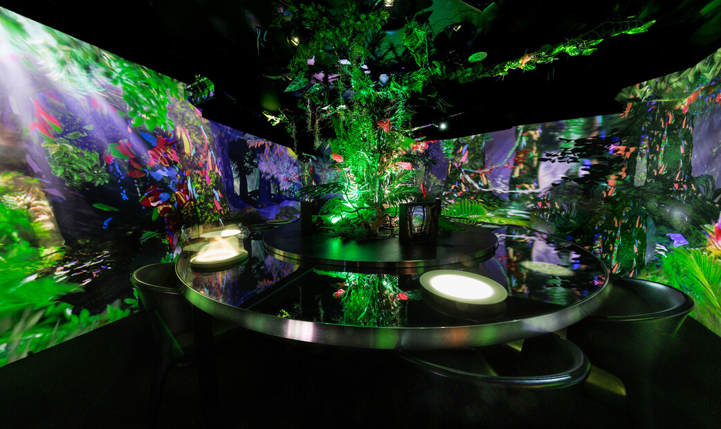 For dinner, enjoy a multisensory feast that blends fresh flavors with VR, projection mapping, lighting, music, and art that transform the dining room.