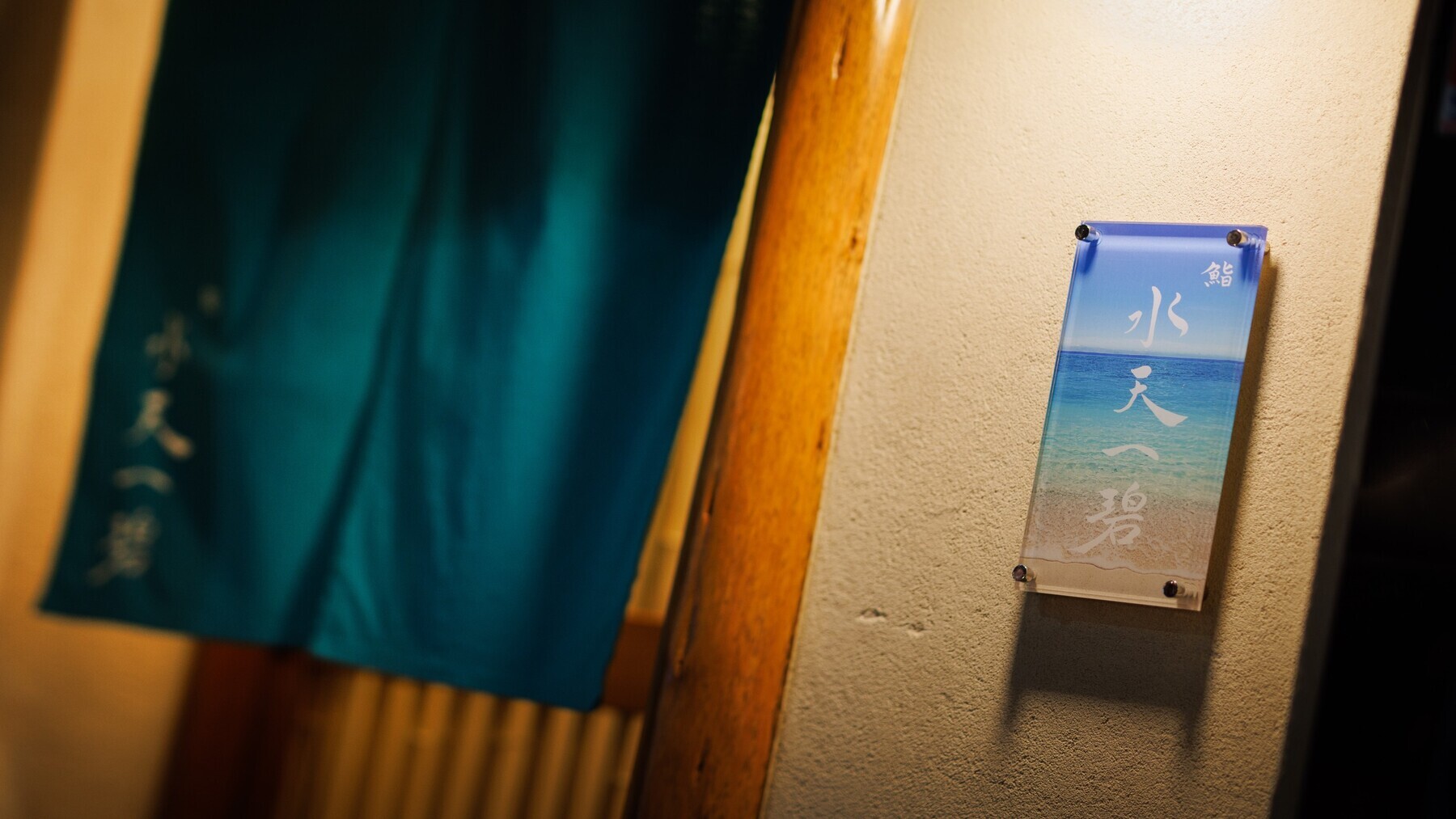 「鮨 水天一碧」以鲜艳的蓝色门帘为标志。地理位置优越,靠近银座站。