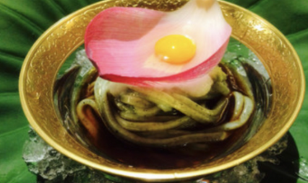 采用当季食材,提供各式各样的料理。 我们的主厨曾在 Alain Ducasse 受训,他的料理融合了日本和法国两国料理特色。