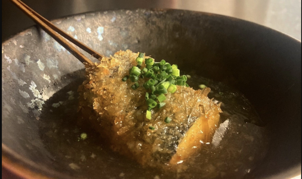 “串揚 010”是一家时尚的餐厅,您可以在这里享受用原创混合油炸制的各国创意串炸料理。