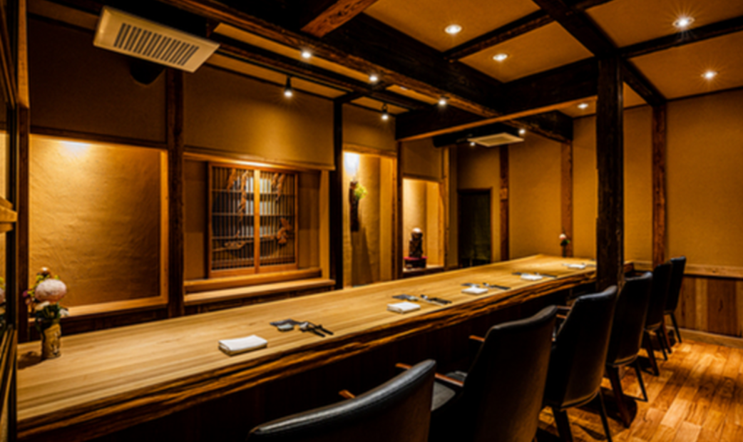 店内设计简约现代。设有私人空间的包间和可以享受料理在眼前完成的现场感的吧台座位。