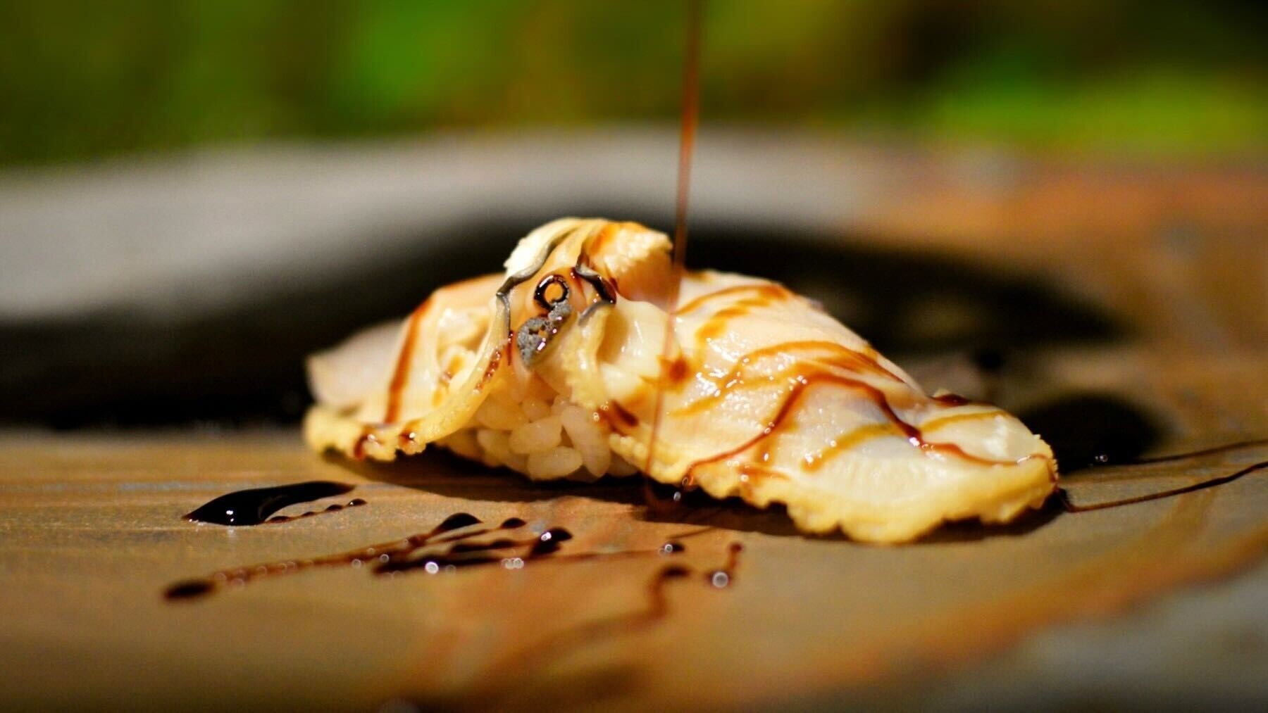红醋的米饭在保留每一粒米的口感的同时,柔和的酸味与鱼的鲜味完美融合。入口瞬间,鱼的甜味和酸味在口中扩散,余韵带有清爽的香气。