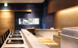 餐厅内仅设有七个座位,白银色的水泥柜台与和鲜艳蓝色墙壁相映成趣,呈现出简约而高雅的空间。无论是与好友相聚、情侣约会,还是独自一人用餐,都非常推荐。