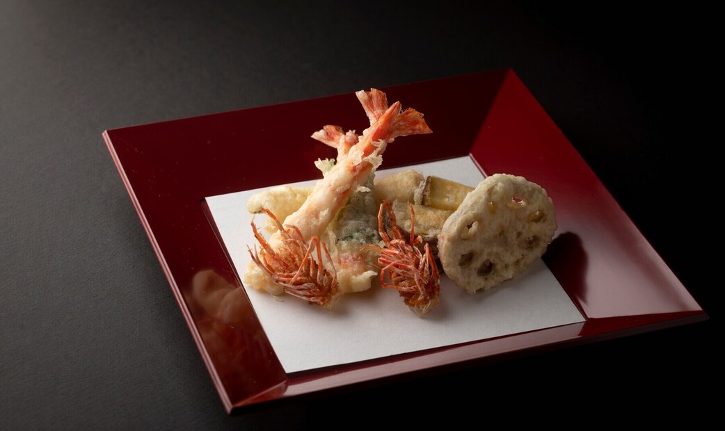 在吧台座位上,您可以在眼前看到新鲜的海鲜和时令京蔬菜放入热油中炸至金黄,配以清淡的关西式汤汁。