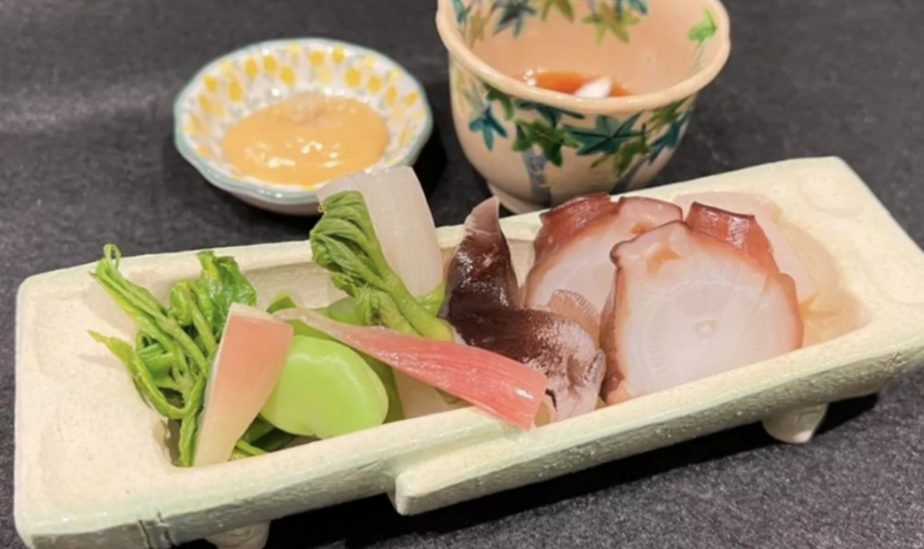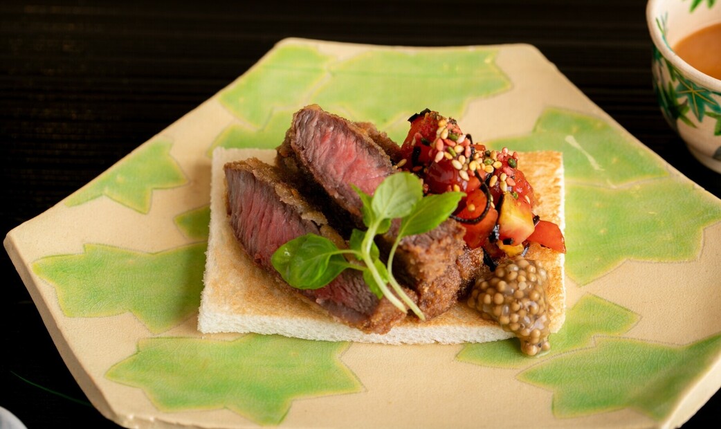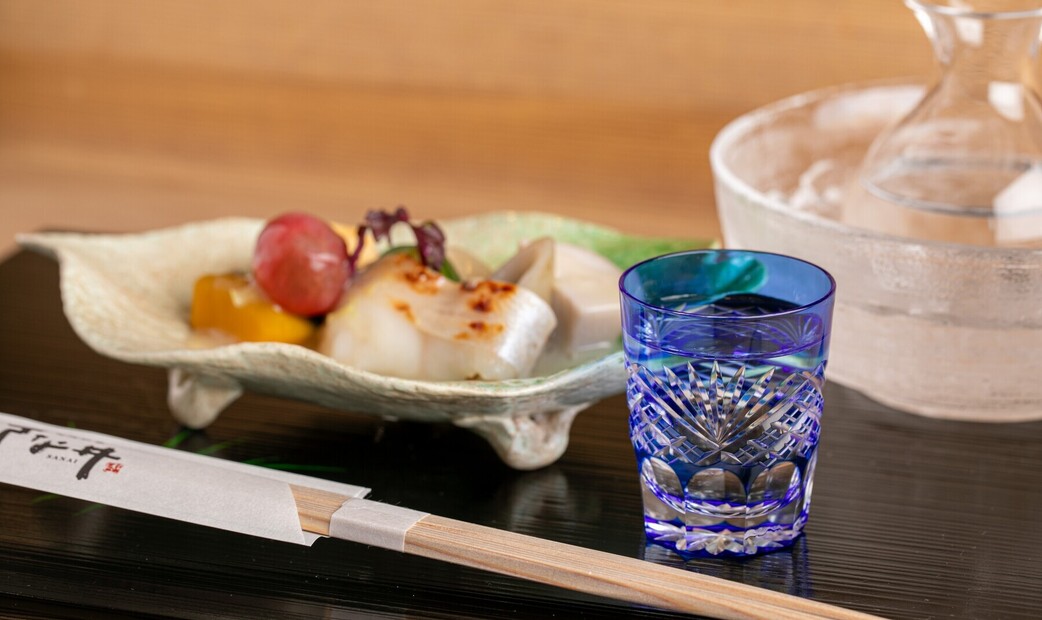 請享用在傳統割烹料理中融入店主獨特創意的菜餚。餐具也十分講究,您可以欣賞到傳統古董和現代設計兼具的器皿。