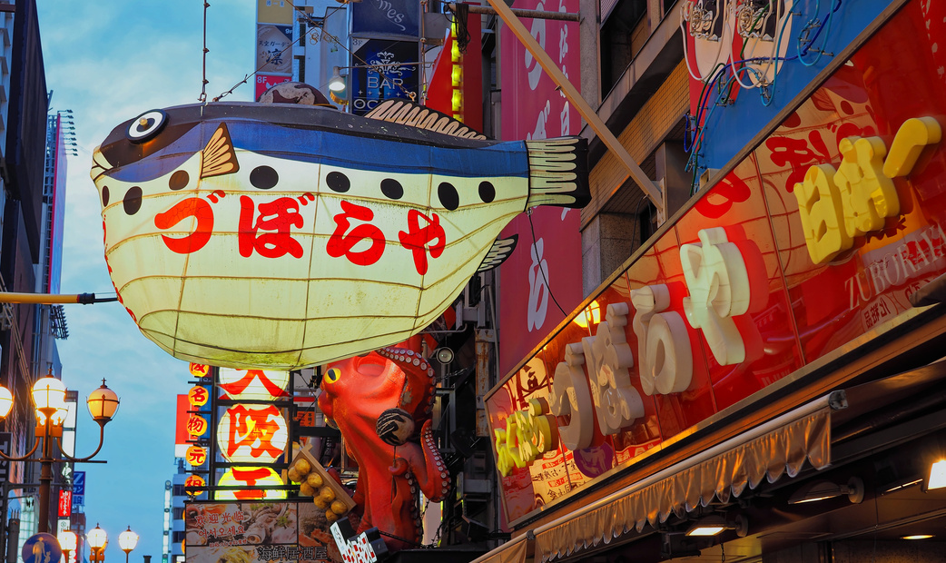大阪是日本虎河豚消費量第一的地區。在道頓堀商業區也有許多河豚料理店。