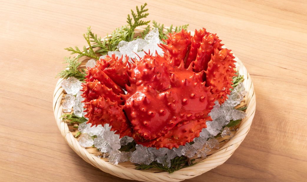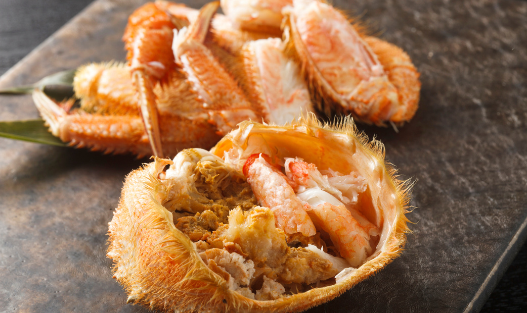 體型大且有嚼勁兒,是日本最受歡迎的螃蟹。時令季節是11月至3月,主要在北海道、東北地區、信越、北陸等地捕獲。這個季節的公蟹特點是肉質結實有鮮味,口感柔軟且帶甜味,美味的湯汁也是一大特色。