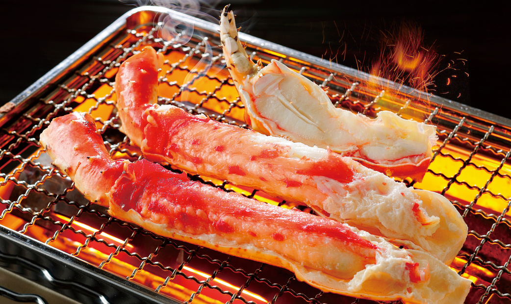 帝王蟹和松葉蟹等大型螃蟹烤來吃也十分受歡迎。餐廳的烤蟹會搭配檸檬或酸橘,有時也會附上醬油或鹽食用。