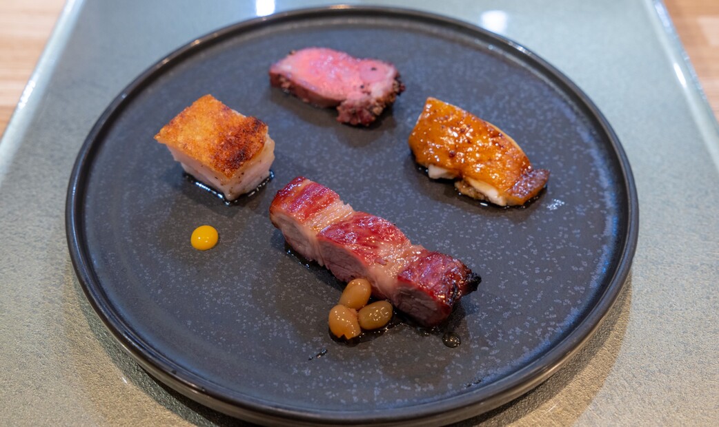 廣尾店僅提供晚餐主廚搭配套餐,共有13道菜。在店內可以欣賞到烹制料理的聲音和過程,還能聞到自制發酵調味料和精選正宗香辣調味料的香氣。