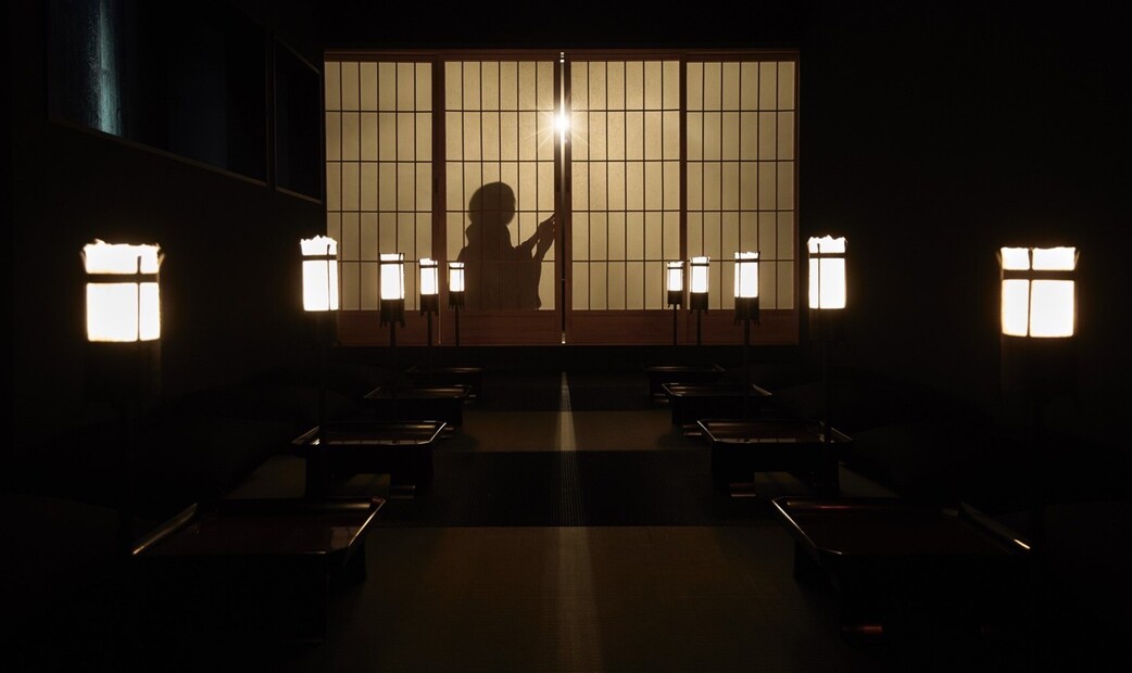 2樓備有僅以蠟燭燈光照亮的榻榻米空間。大碗和銀杯中斟酒,營造出自然流露真心話的靜謐緊張感。